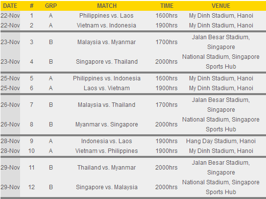 Jadual Piala Aff Suzuki 2014 Sanoktah