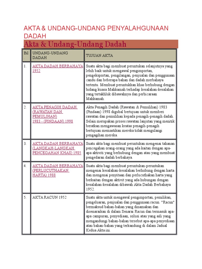 Pendidikan Pencegahan Dadah Ppda Akta Undang Undang Penyalahgunaan Dadah