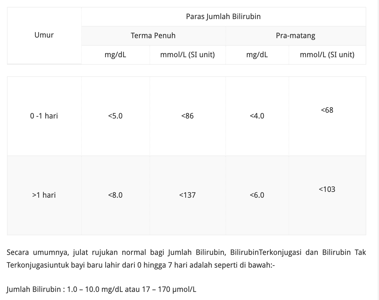 Demam Kuning Pada Bayi Bacaan Bilirubin Bayi Jaundis Sangat Tinggi 30 Mg Dl 513 Umol L Koleksi Resepi Face Mask Kain Cotton Tips Keibubapaan