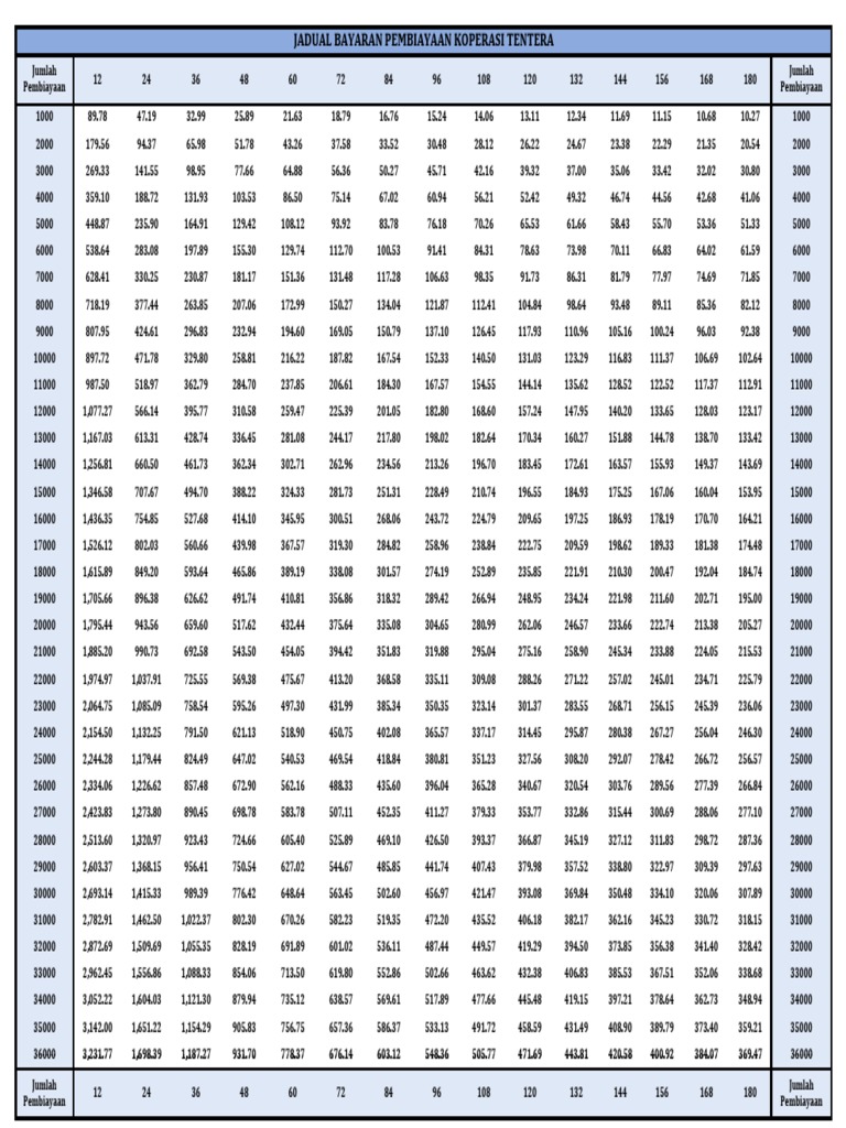 Jadual Bayaran Pembiayaan Koperasi Tentera Pdf