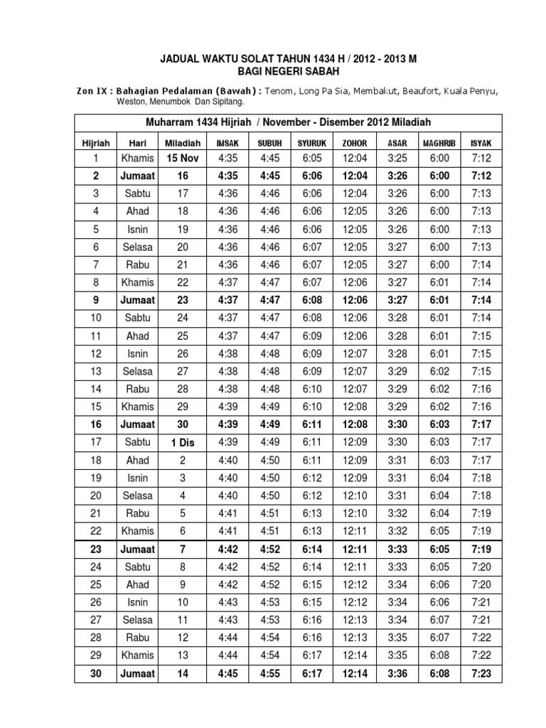 Xls Jadual Waktu Solat 1437 Seluruh Sabah Pusat Islam Ums Academia Edu