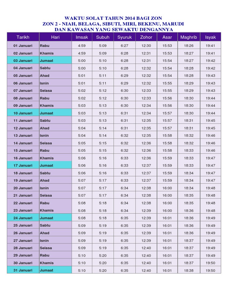 Waktu Solat Miri Niah Bekenu Sibuti Marudi