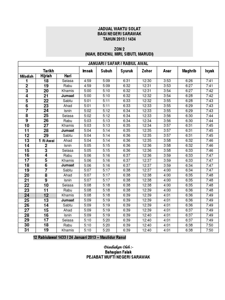 Waktu Solat Bahagian Miri 2013