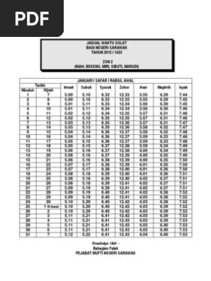 Jadual Solat Zon 2