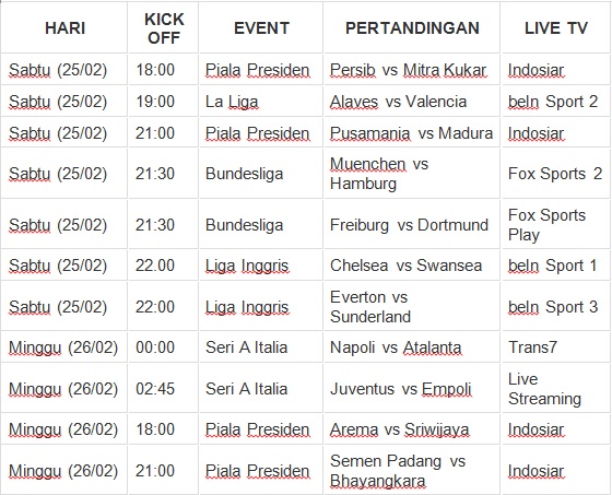 Jadwal bola hari ini siaran langsung live di tv dan livescore.