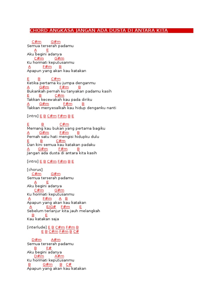 Jangan Ada Dusta Diantara Kita Angkasa Llirk Chord Gitar Chords Chordify