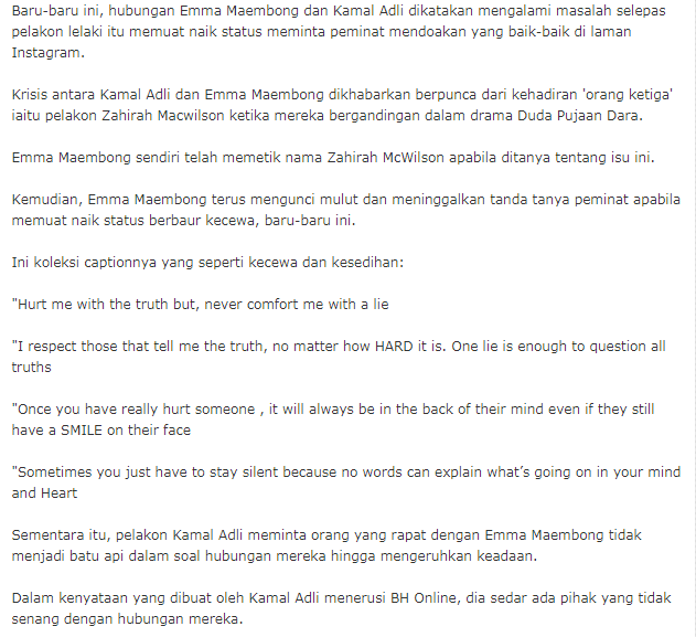 Amat bahawa sifat tersebut. Pelakon kamal adli meminta mereka yang rapat dengan emma maembong tidak bersikap batu api dalam soal hubungan mereka hingga mengeruhkan keadaan. Cuma saya ingin pesan kepada orang sekeling supaya jangan jadi batu api katanya kepada harian metro. Shah alam rakyat malaysia perlu menjadi lebih matang dalam usaha memupuk perpaduan negara dan mengeratkan hubungan antara kaum di negara ini.
