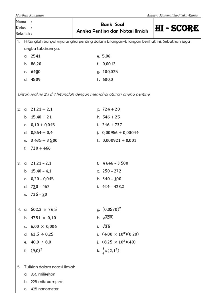 Angka Penting Dan Notasi Ilmiah Mandiri Docx