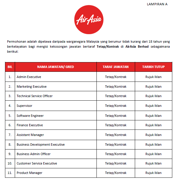 Jawatan Kosong Terkini Airasia Berhad Pelbagai Kekosongan Jawatan Kerja Kosong Kerajaan Swasta