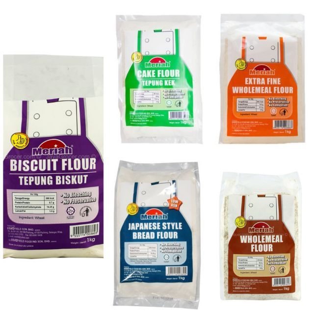 Pelbagai Pilihan Tepung Jenama Meriah Bread Flour Wholemeal French Biscuit Cake Japanese Style Flour Shopee Malaysia