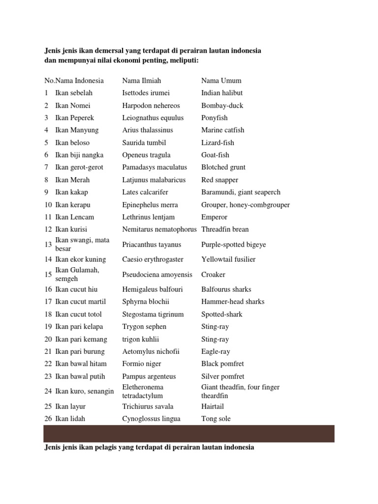 Jenis Jenis Ikan Demersal Yang Terdapat Di Perairan Lautan Indonesia