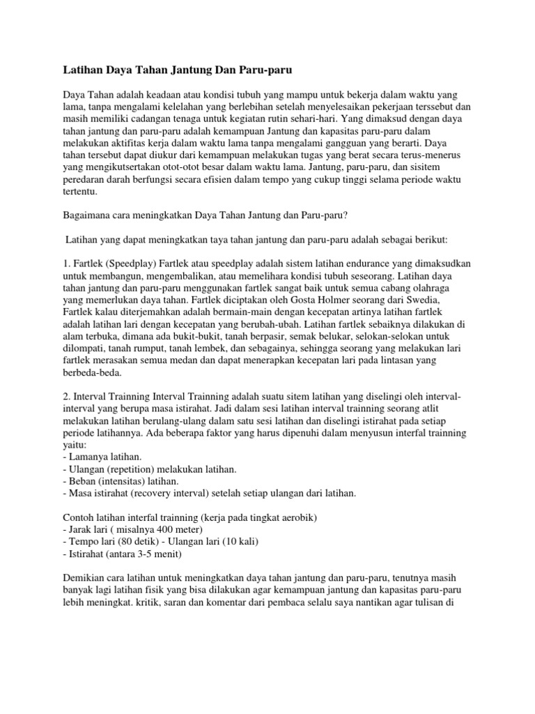 Latihan Peningkatan Daya Tahan Jantung Dan Paru Paru Contoh Kegiatan