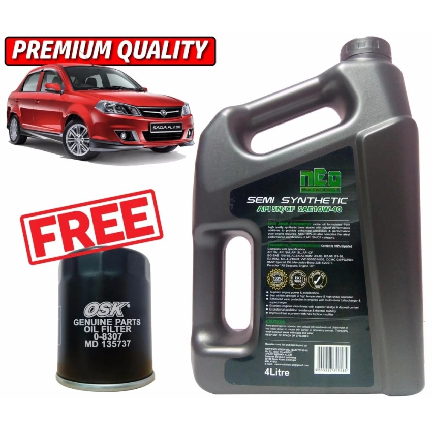Engine Oil 10w40 Semi Synthetic Neo 4litre For Proton Saga Flx Free Oil Filter Shopee Malaysia