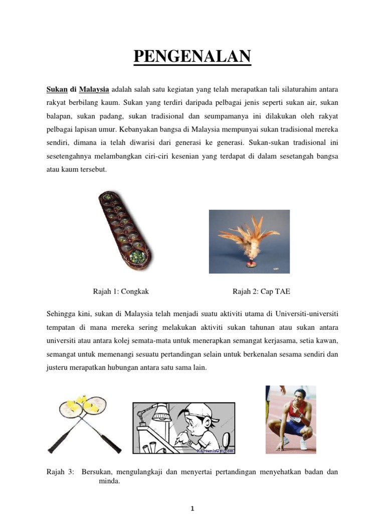 Pengenalan Sukan Di Malaysia Adalah Salah Satu Kegiatan Yang Telah Merapatkan Tali Silaturahim Antara