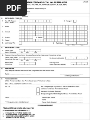 Borang Permohonan Lesen Vokasional Pembaharuan Lesen Gdl Dan Psv