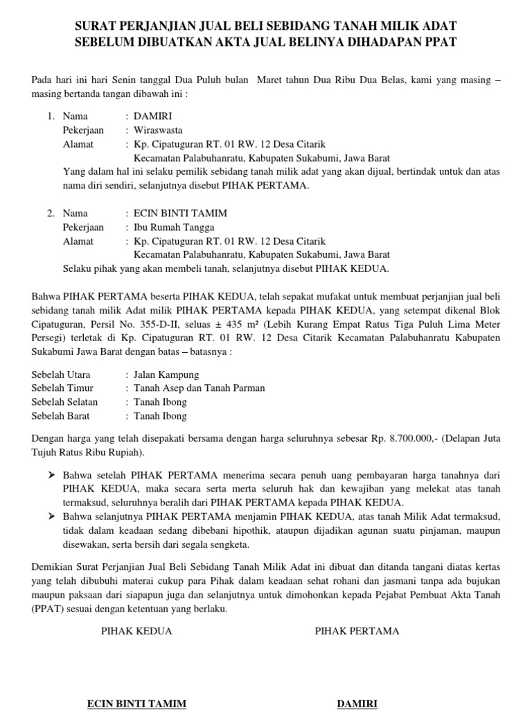 Contoh Surat Perjanjian Jual Beli Tanah Pdf Doc Lamudi
