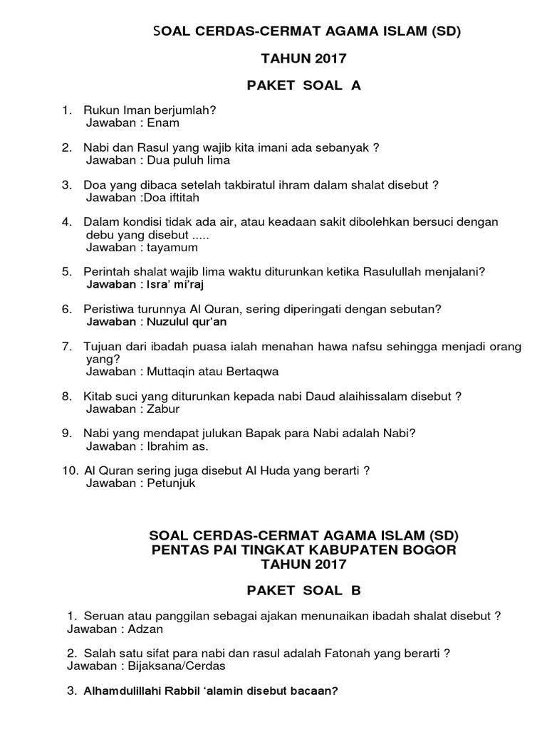 Soal Cerdas Pai