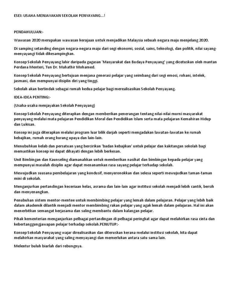 Contoh Karangan Tingkatan 1