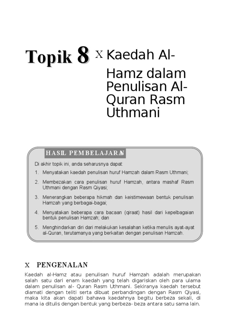 Kaedah Penulisan Rasm Uthmani Hamzah By Tengku Yanaa
