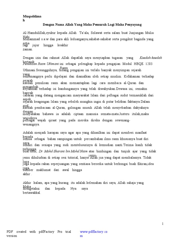 Rasm Uthmani Siti Zulaika Academia Edu