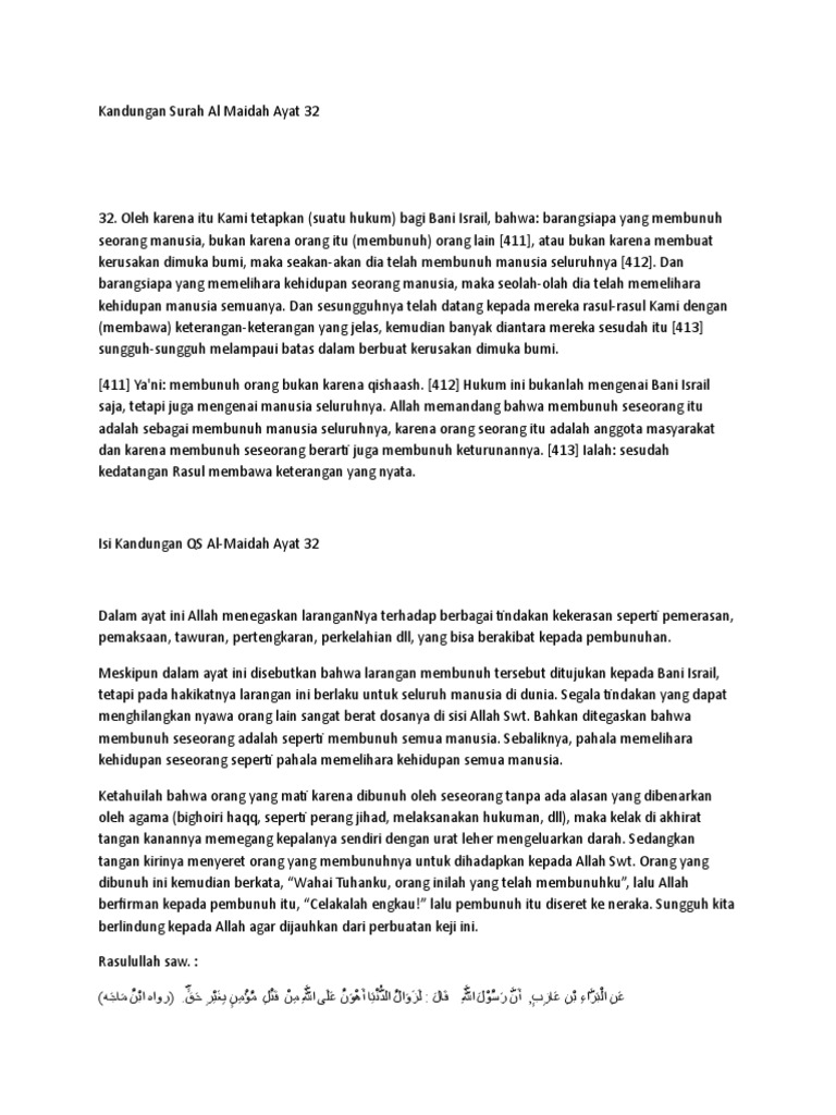 Isi Kandungan Surat Al Maidah Ayat 32 Dan Terjemahan