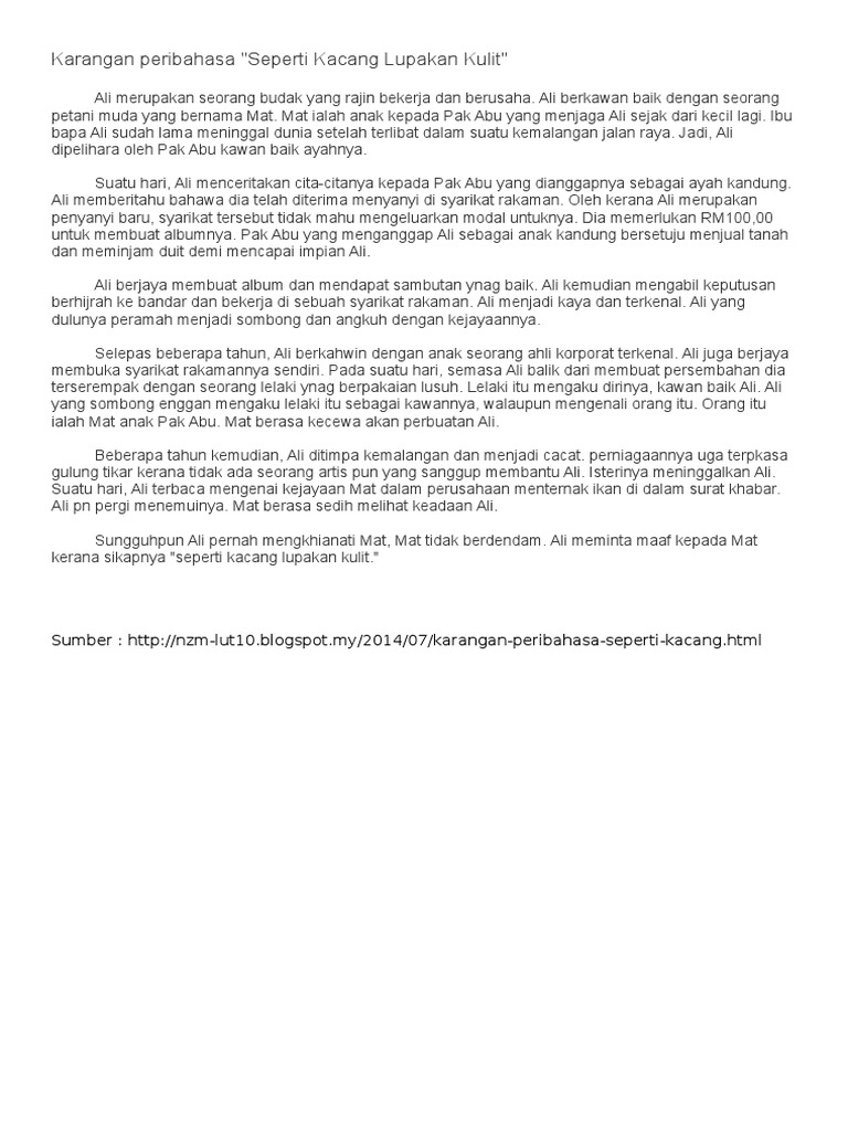 Documents Tips Karangan Peribahasa Seperti Kacang Lupakan Kulit Docx