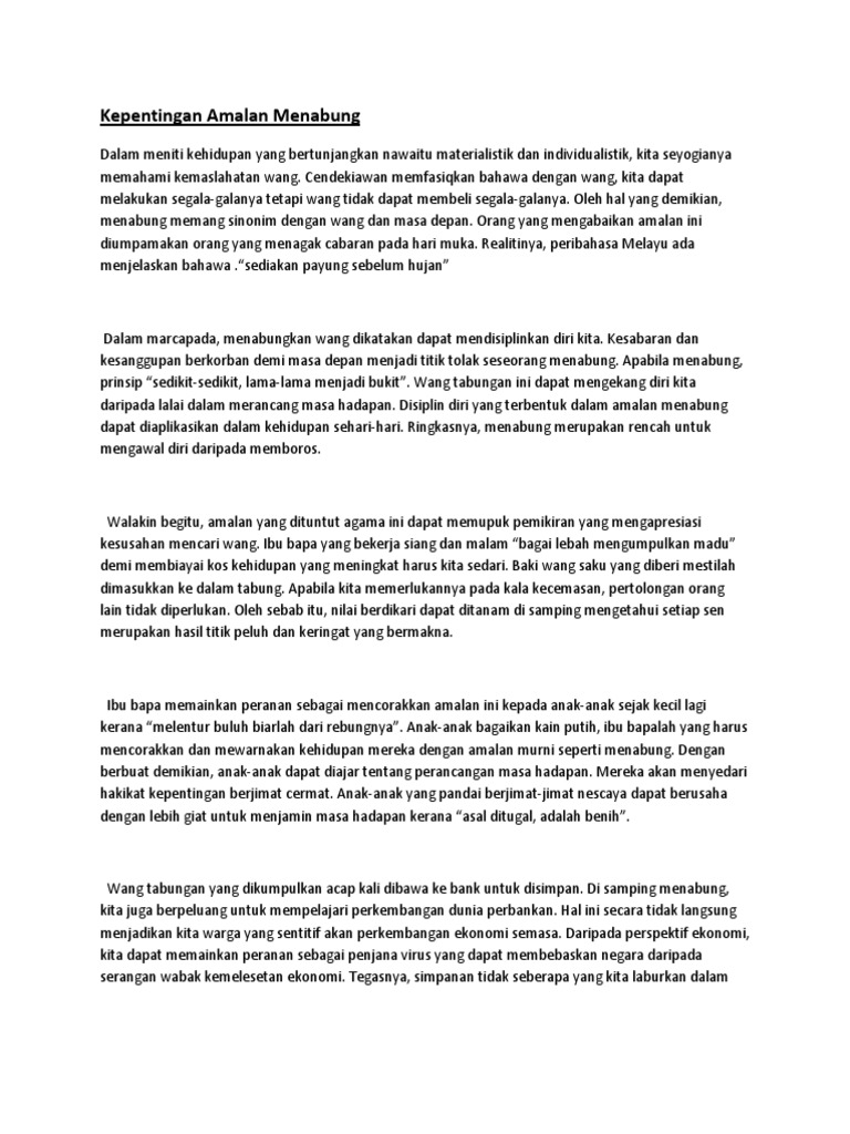 Contoh Karangan Spm Amalan Berjimat Cermat