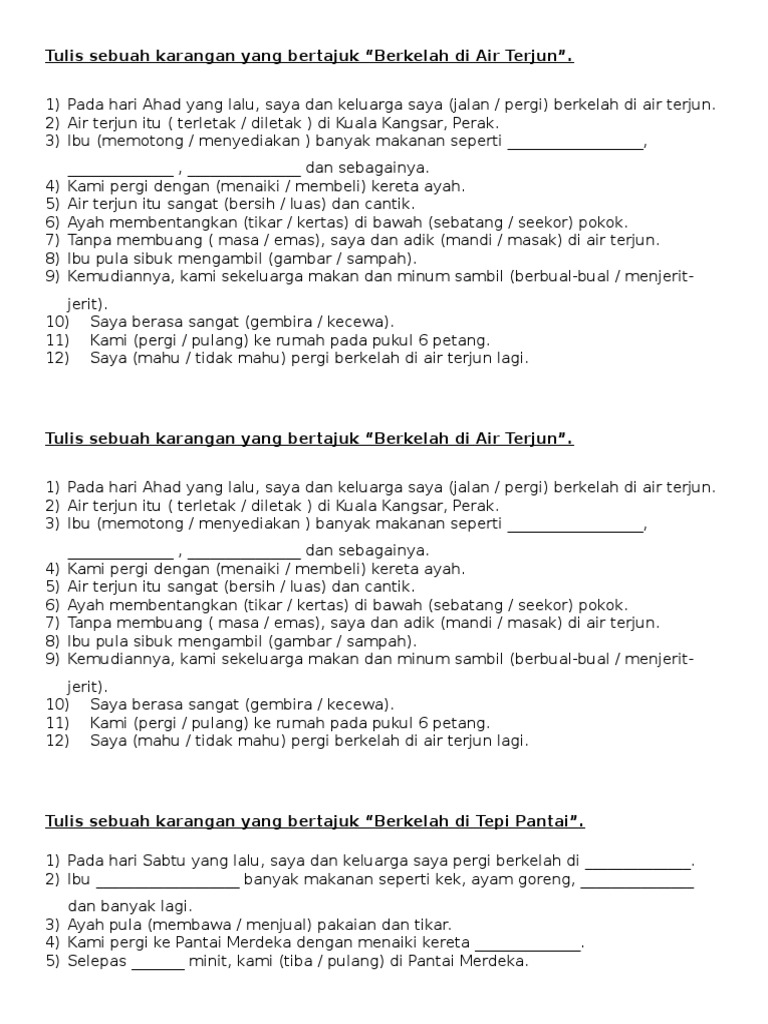 Contoh Karangan Berkelah Di Tepi Pantai