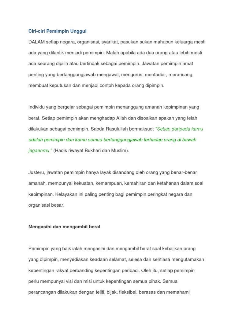 Karangan Ciri Ciri Pemimpin Yang Berwibawa