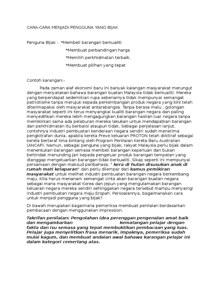 Doc Contoh Karangan 1 Bagaimana Menjadi Seorang Pengguna Yang Bestari Demi Mengatasi Masalah Ekonomi Negara Fatin Ngahh Academia Edu