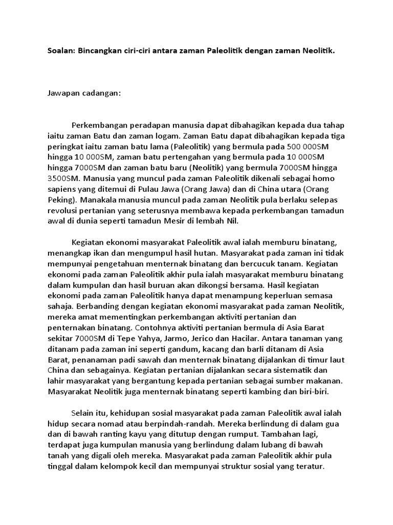 Ciri Ciri Antara Zaman Paleolitik Dengan Zaman Neolitik
