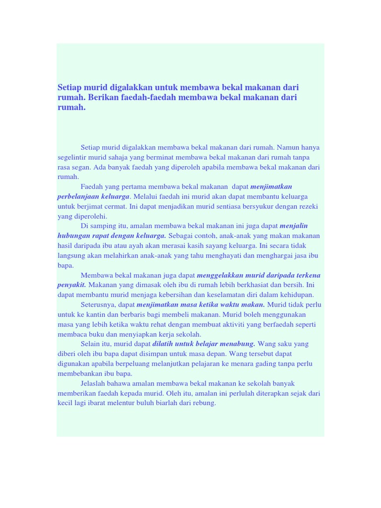 Contoh Karangan Faedah Membawa Bekal Ke Sekolah