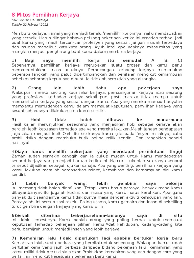 Sampel Karangan 1 Faktor Faktor Pemilihan Kerjaya Bagi Seseorang Remaja