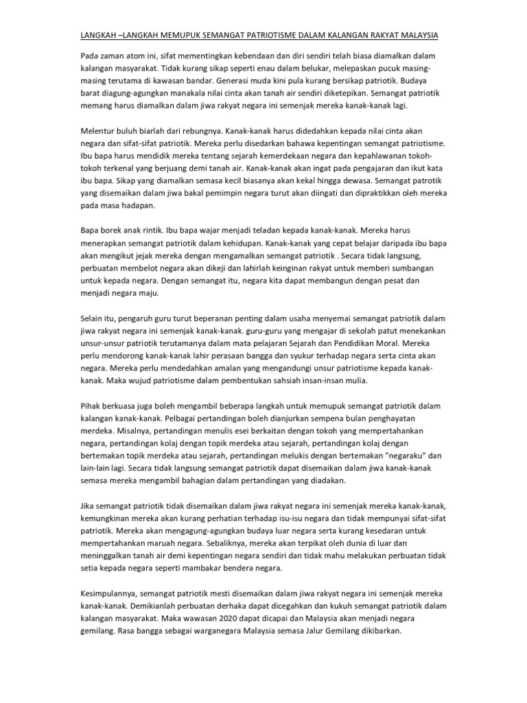 Essay Etnik Jiji Memupuk Semangat Perpaduan Kemerdekaan Patriotisme Semangat Patriotik Semakin Luntur Dalam Kalangan Masyarakat Di Negara Kita Pada Course Hero