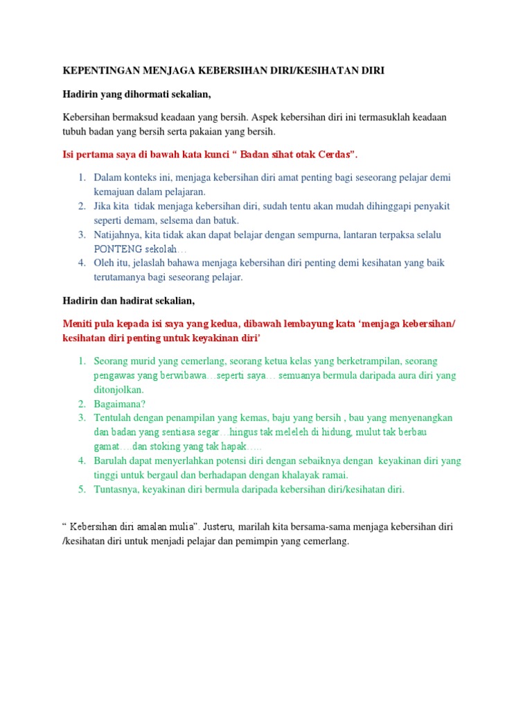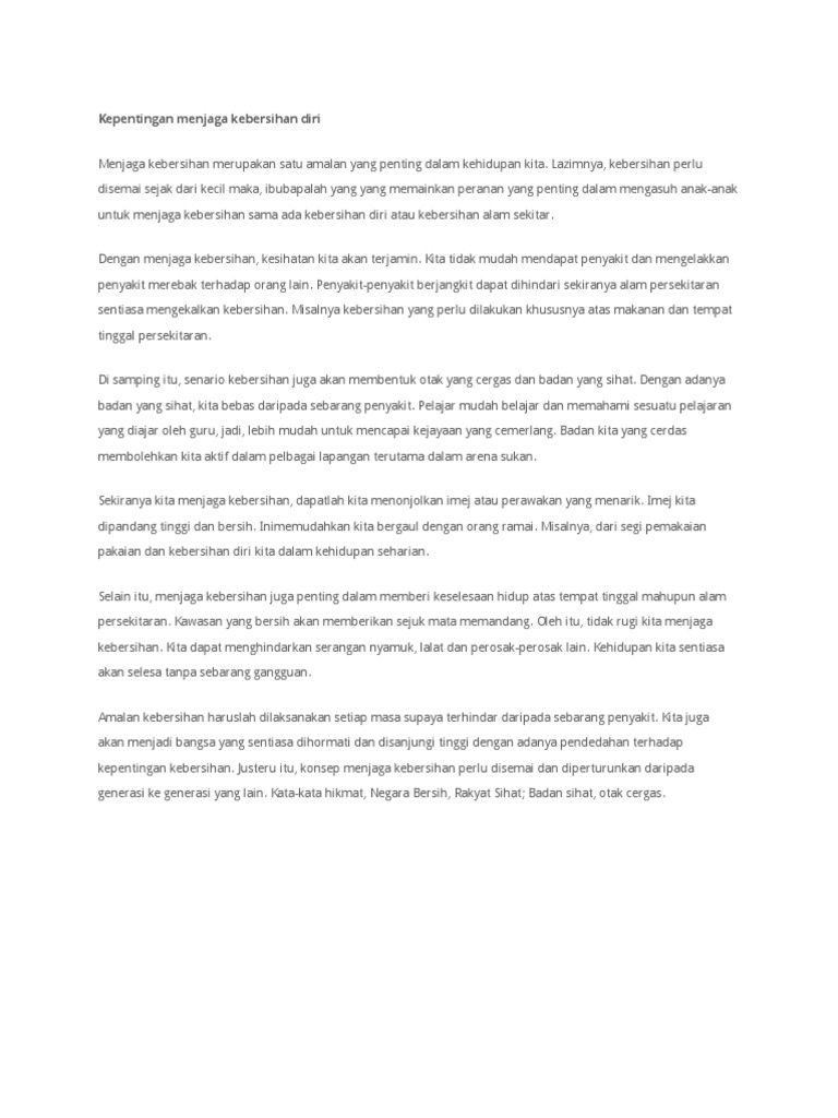 Karangan Kepentingan Menjaga Kesihatan Dan Kebersihan Diri