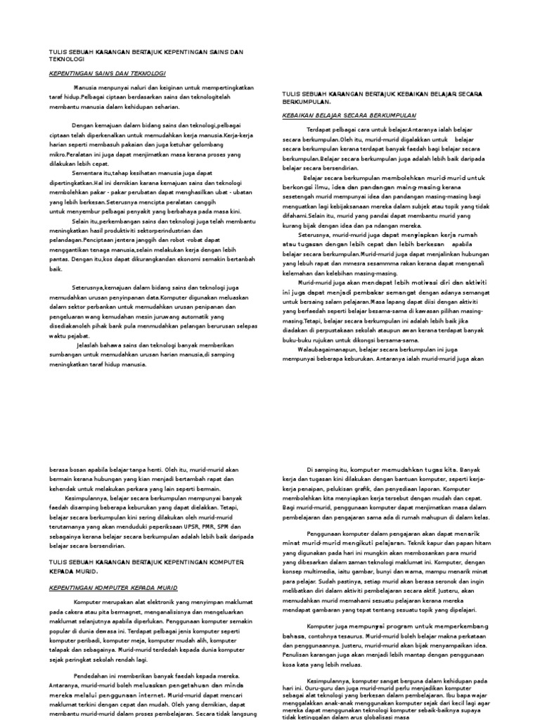 Contoh Karangan Kepentingan Sains Dan Teknologi Wo Contoh