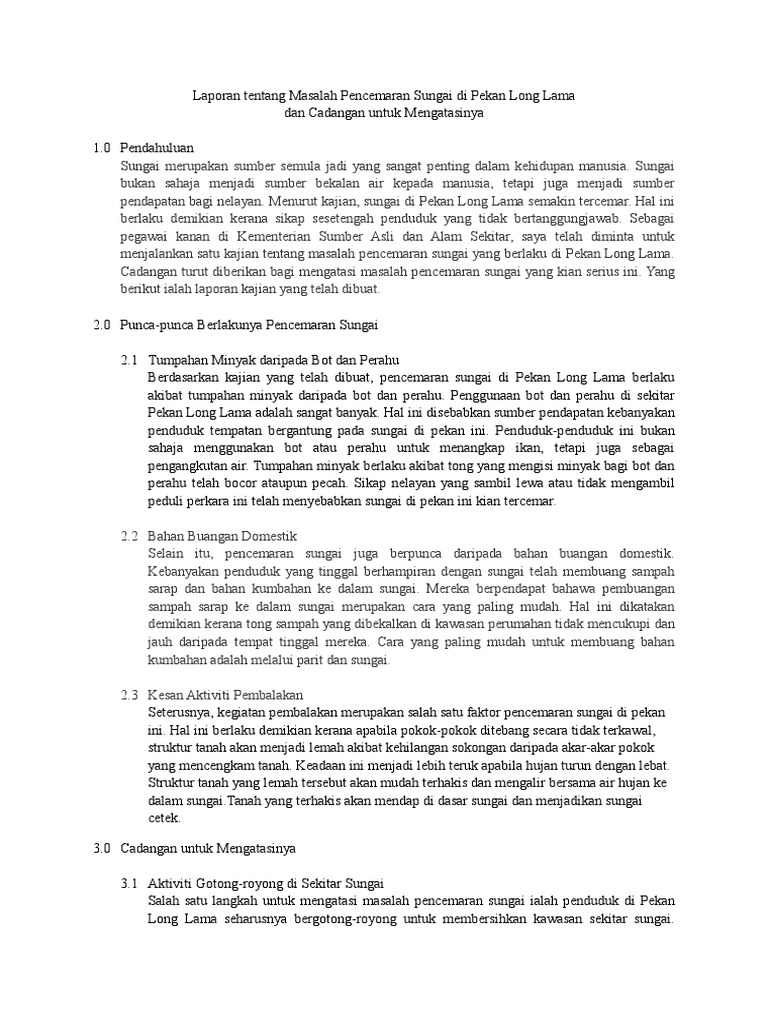 Karangan Kesan Pencemaran Sungai Stpm