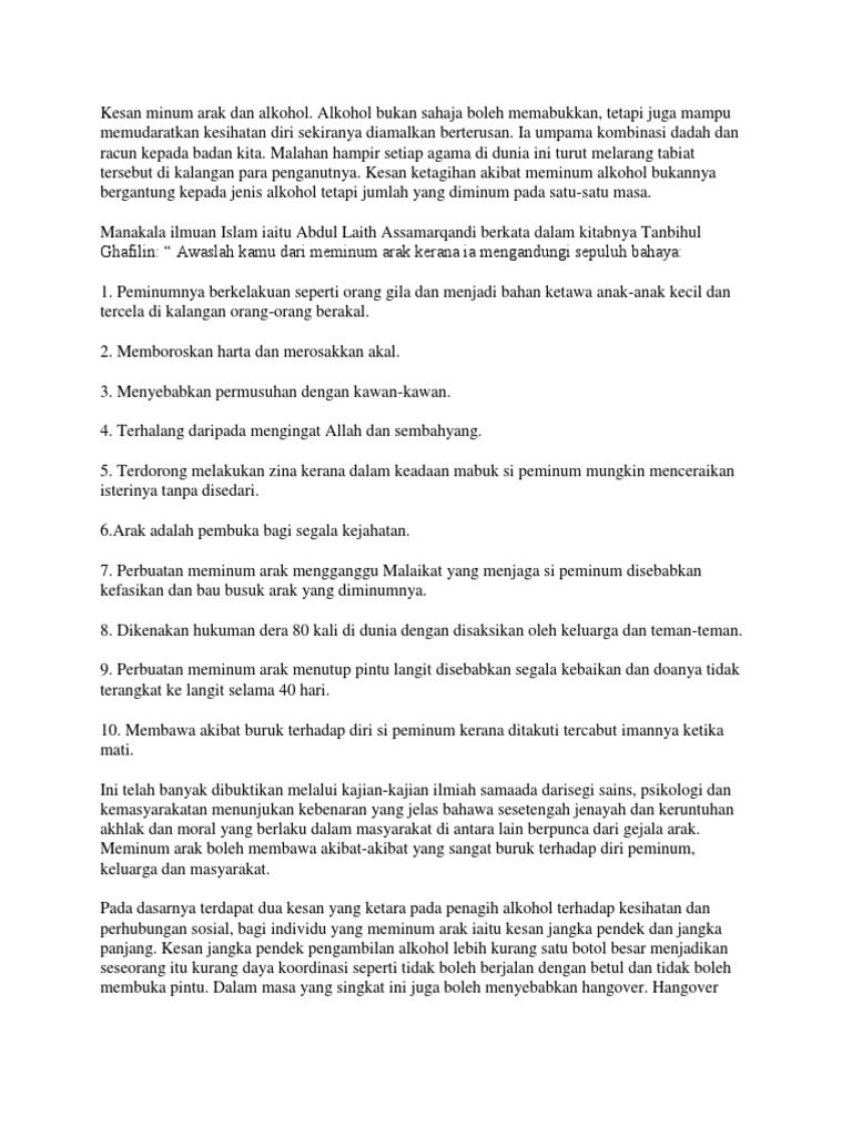 Karangan Kesan Penyalahgunaan Dadah Dan Alkohol