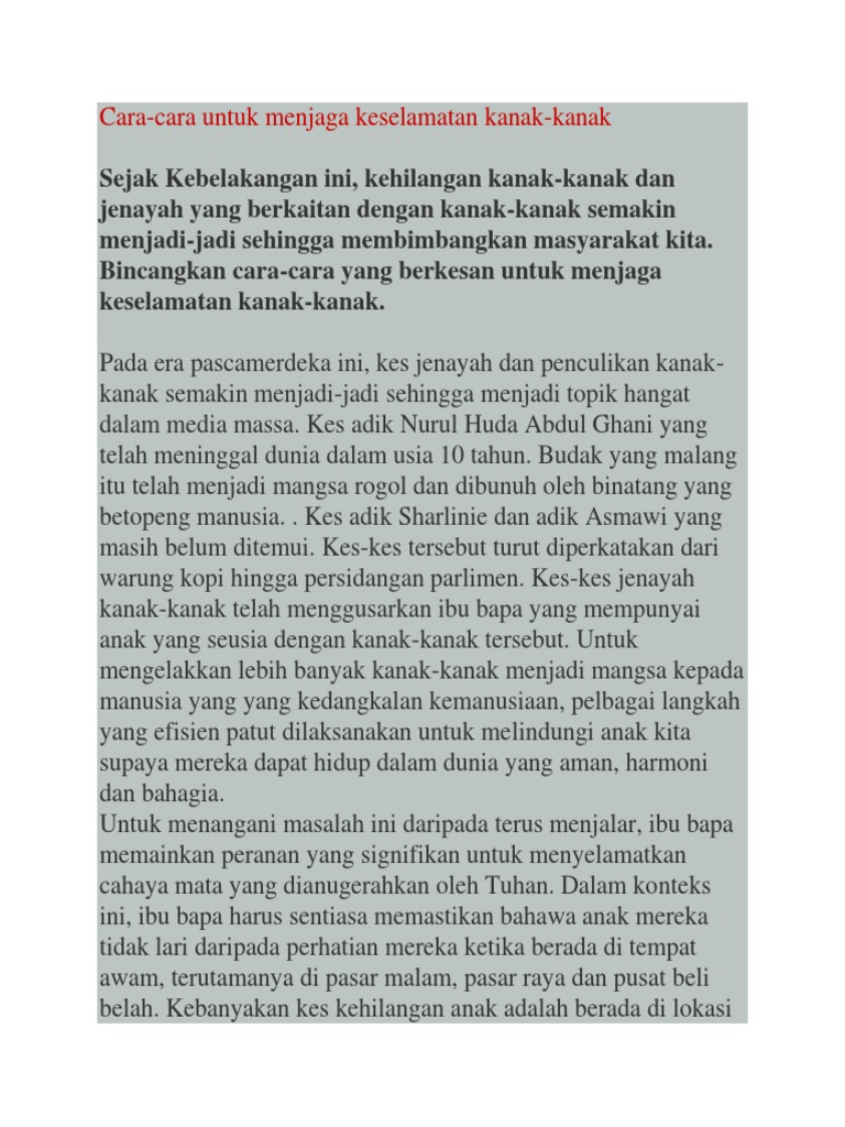 Langkah Langkah Menjaga Keselamatan Kanak Kanak