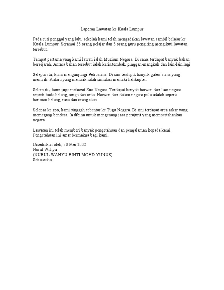 Karangan Laporan Lawatan Sambil Belajar Ke Kuala Lumpur Karangan Contoh Cikgugoh