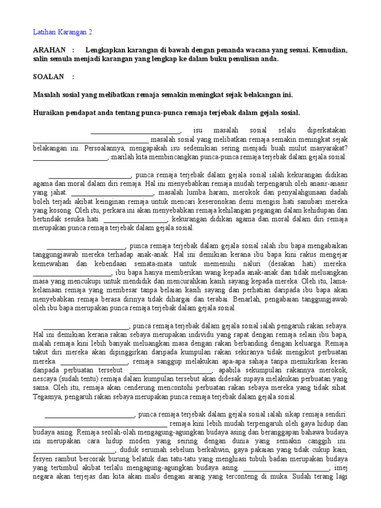 Latihan Karangan Gejala Sosial Remaja