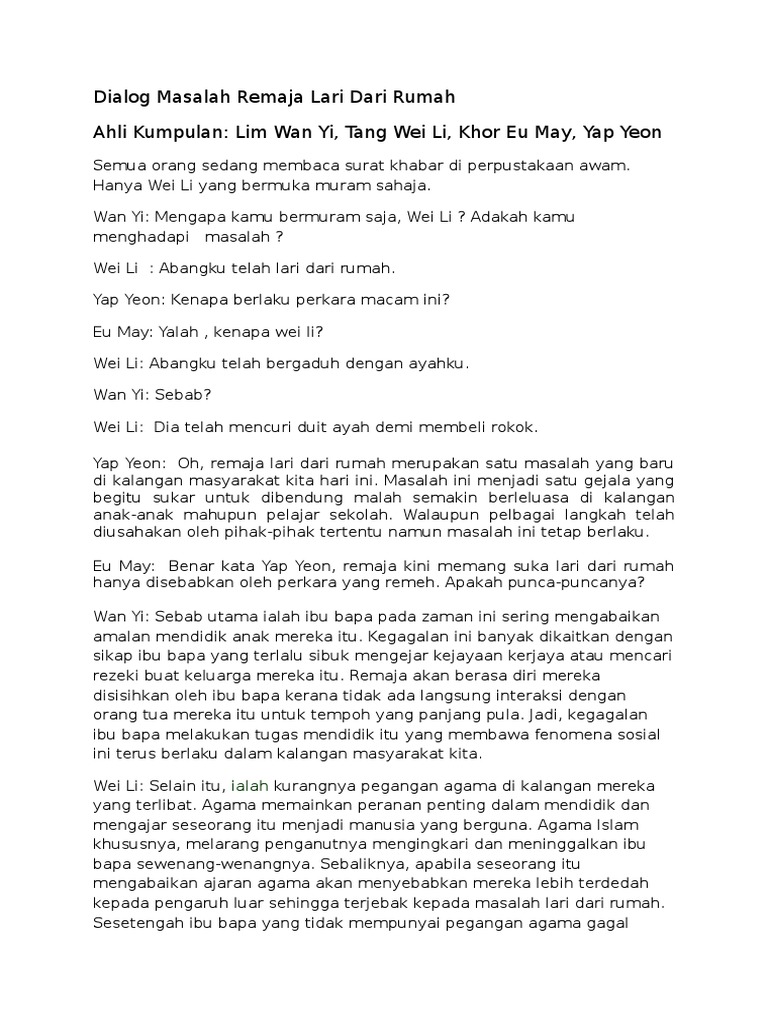 Dialog Masalah Remaja Lari Dari Rumah