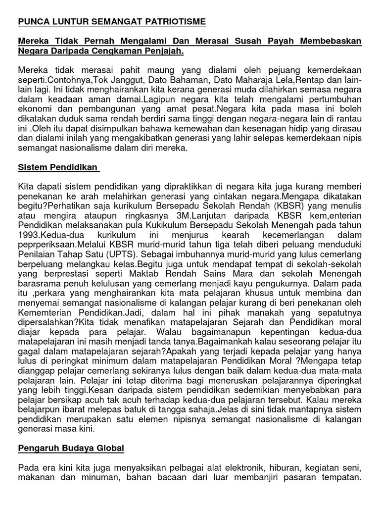 Karangan Spm Semangat Patriotik