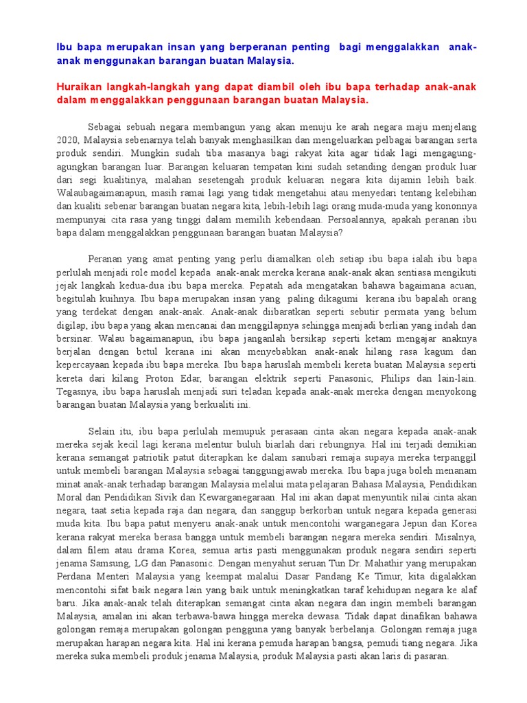 Karangan Spm Permainan Tradisional Peranan Ibu Bapa