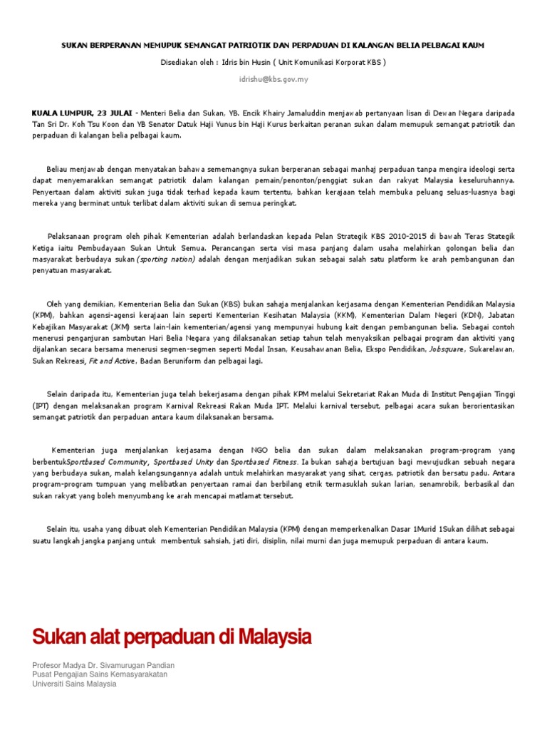 Bab 1 Pengenalan Sukan Sebagai Alat Perpaduan Dan Perpaduan Antarbangsa Malaysia Terdiri Daripada Berbagai Kaum Dan Kumpulan Etnik Aktiviti Sukan Course Hero