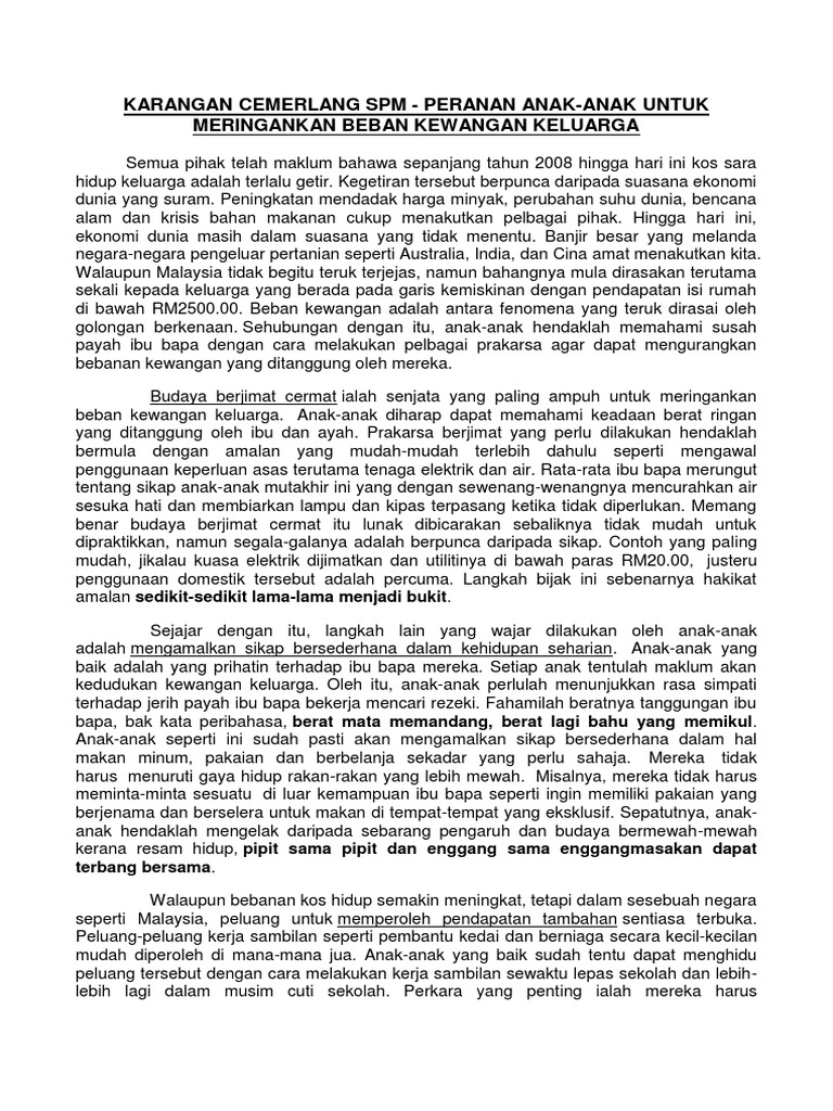 Karangan Tanggungjawab Anak Terhadap Ibu Bapa Spm