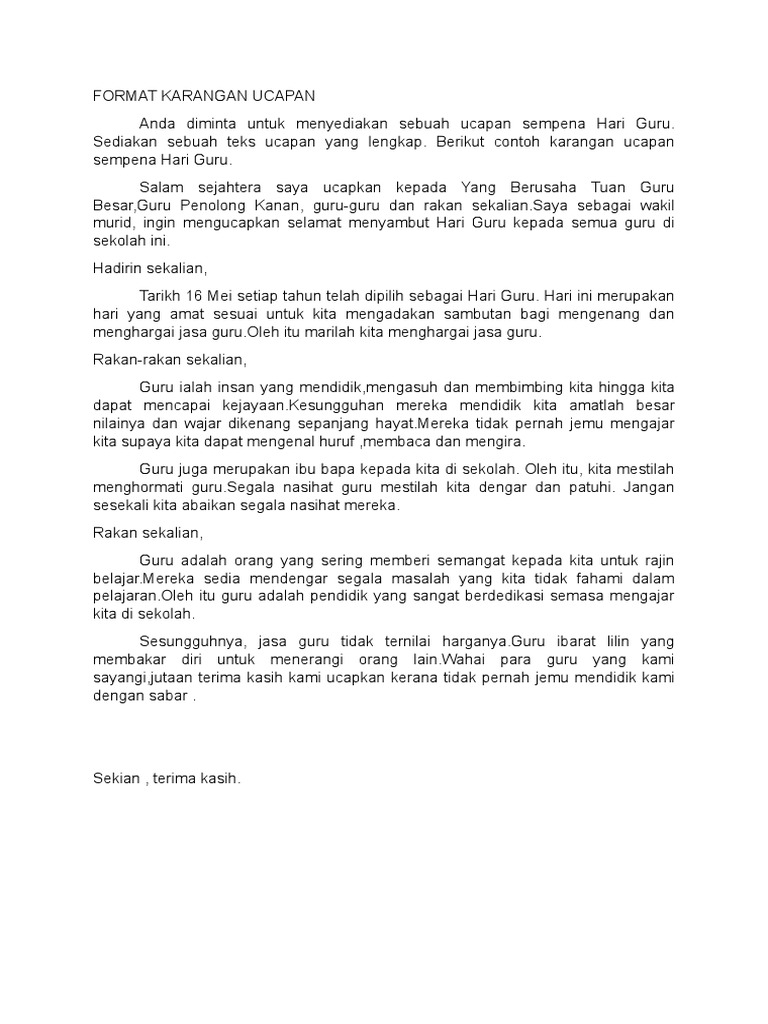 Contoh Karangan Ucapan Sempena Hari Guru Doc Chi Square Academia Edu