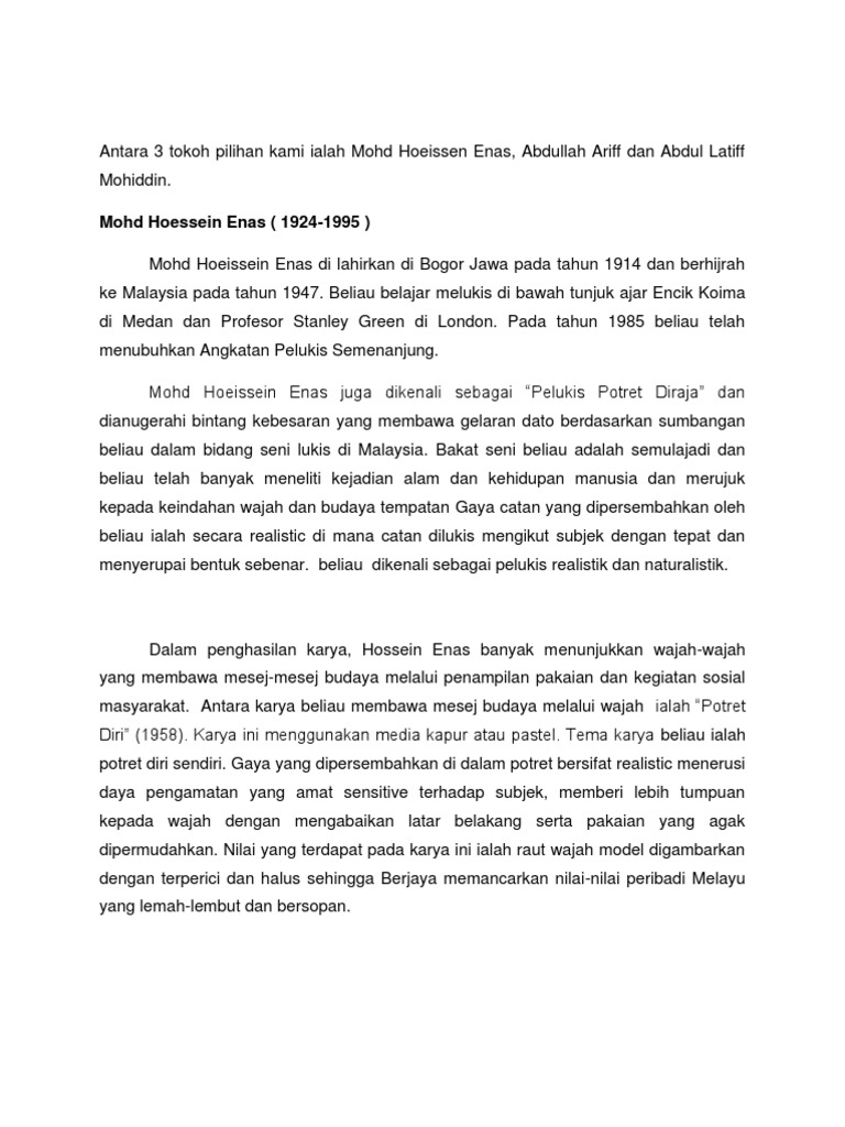 Doc Nama Pelukis Mohd Hoessein Enas Nor Syazwani Academia Edu