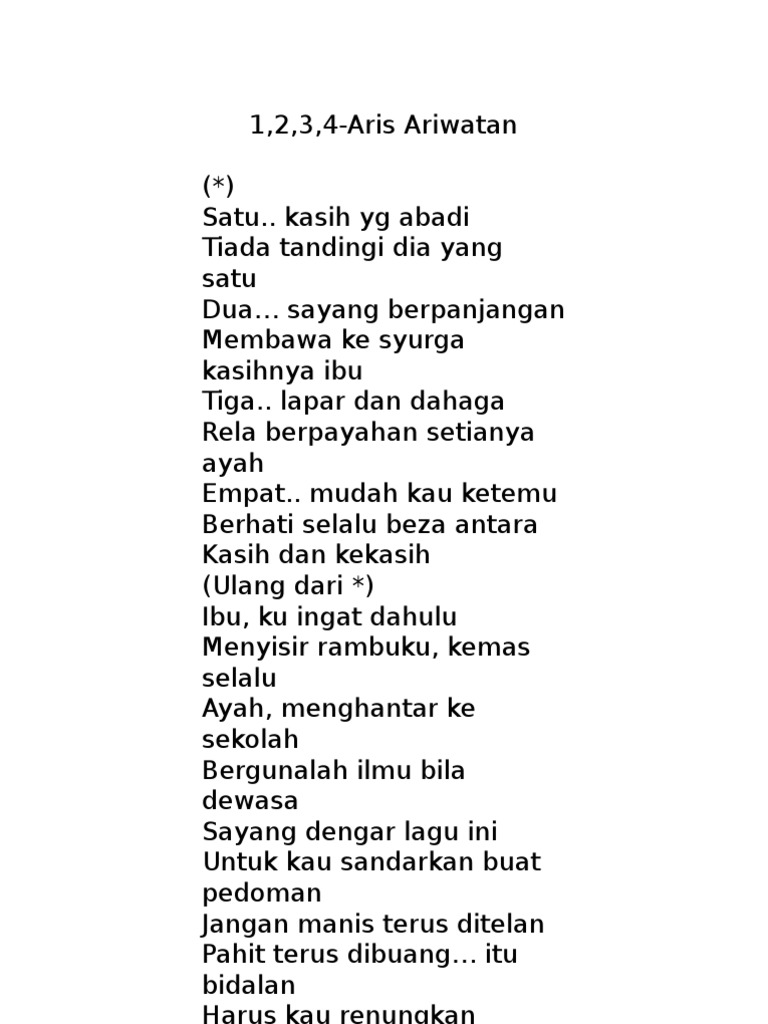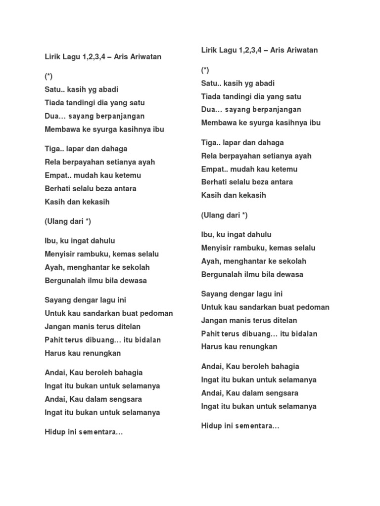Lirik Lagu 1 2 3 4