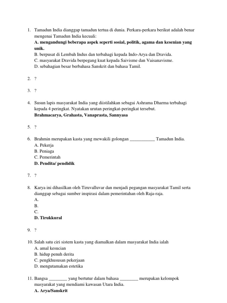 Brahmin Merupakan Kasta Yang Mewakili Golongan Tamadun India A Pekerja B Course Hero